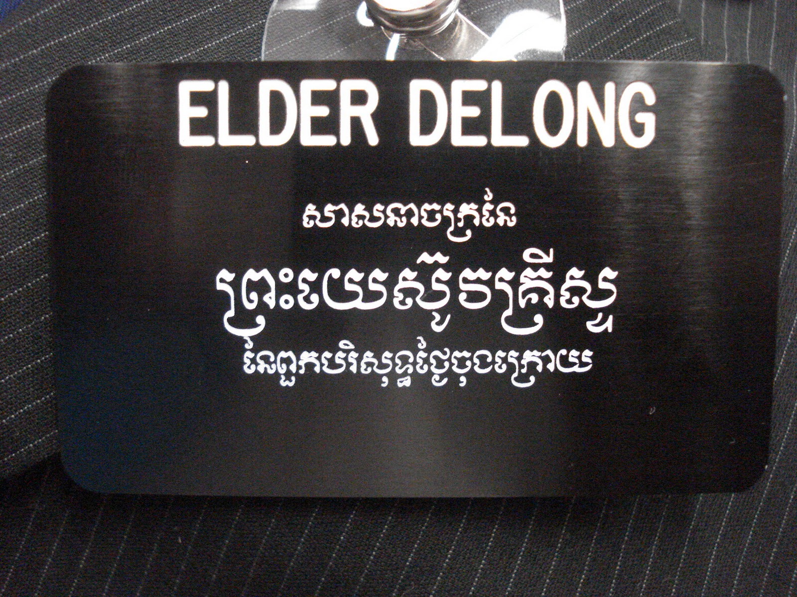 Comreapsua! Khnom chmua Elder DeLong, hatty khnom pii Mesa, Arizona. Khnom mean bccg b?oon buan neak. (some of the characters he wrote are different than what I could type!)